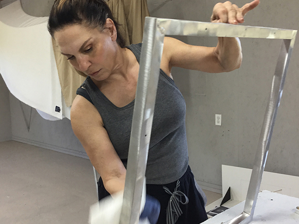 My sculpture involves processes that are innovative, and refined through personal development and need, enabling me to get the resulting forms that define my aesthetic. My designing utilizes metal-working techniques of bending, cutting, assembling and welding, prior to the placement of fabrics and other malleable materials that integrate with the forms. Fabrics are well placed, and hand stitched, or laced taught to frameworks, and sheet metals are handled similarly and screwed to their underlying forms.