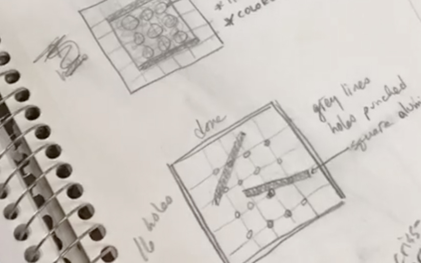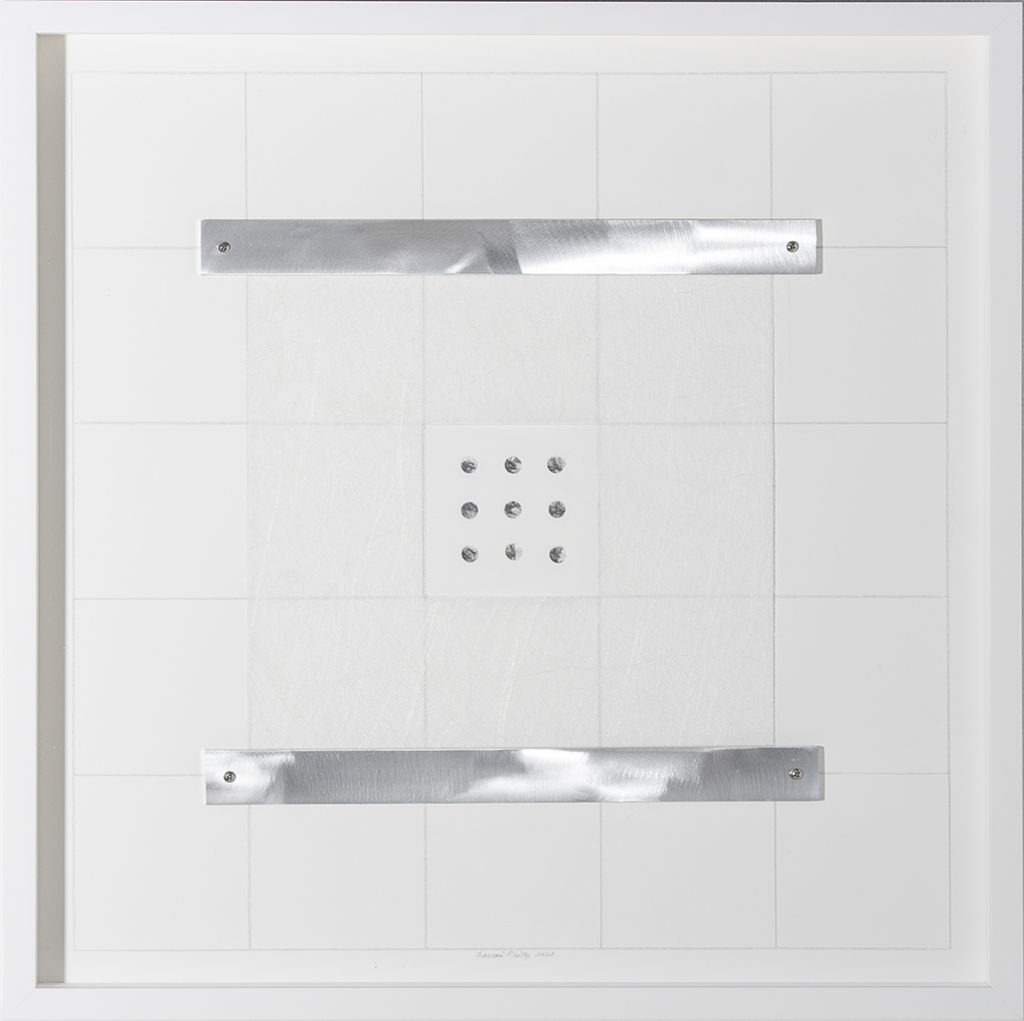 Pencil, paper aluminum, watercolor, lutradur fabric, aluminum