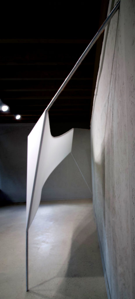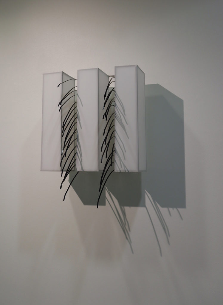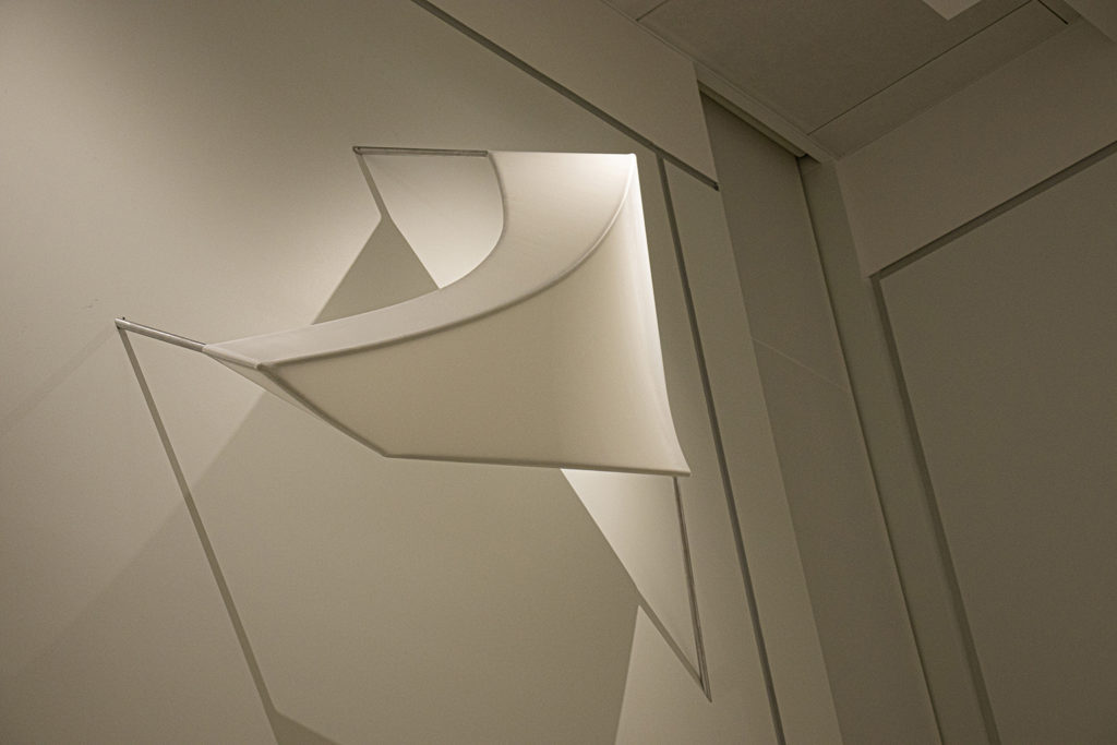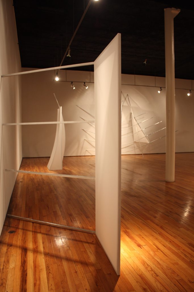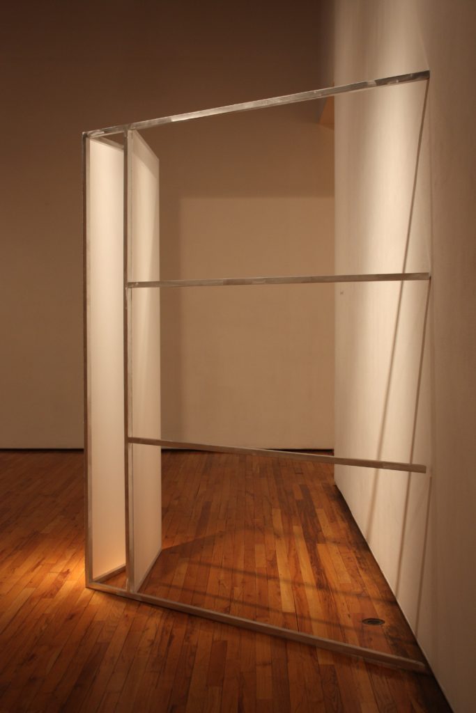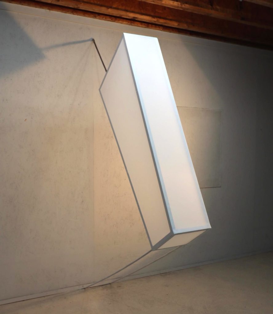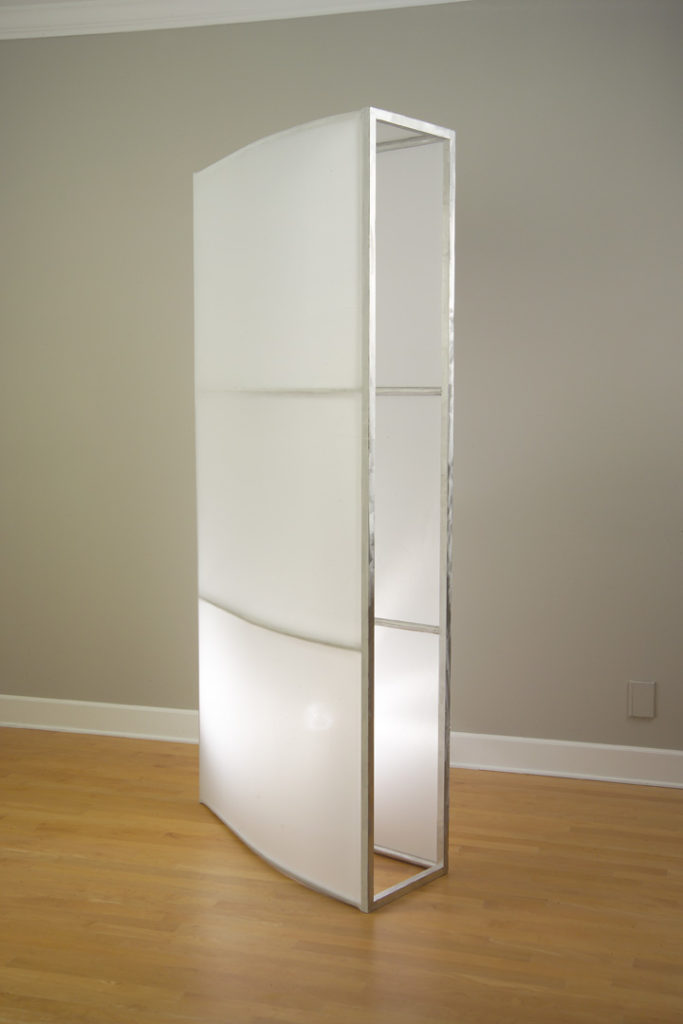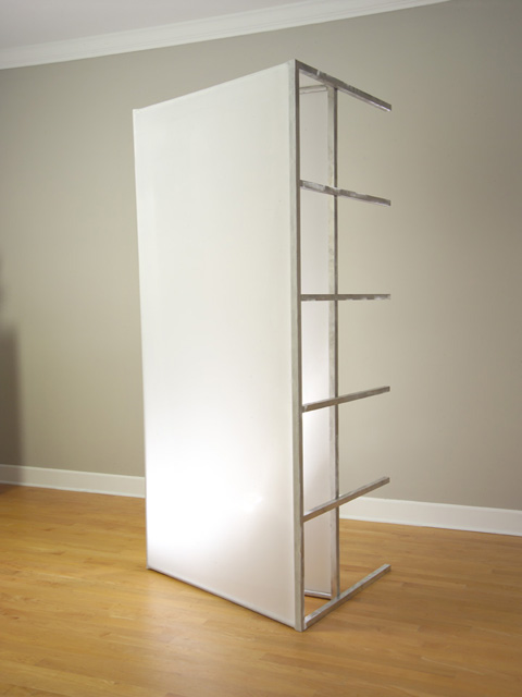 132”h x 135”w x 7”d; extends 77” out from wall; stands 96”h on wall