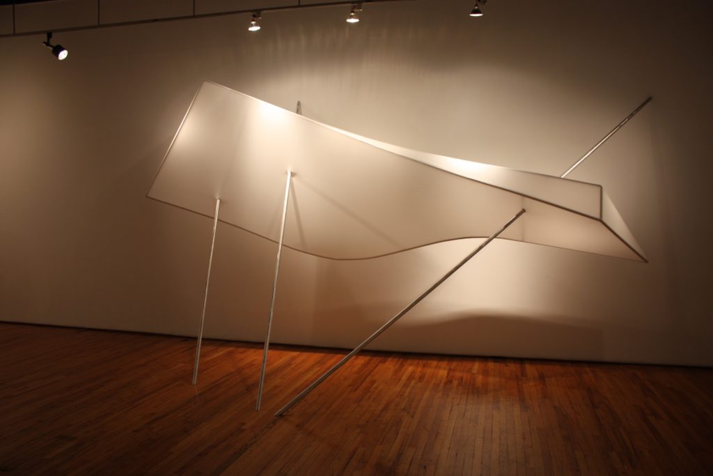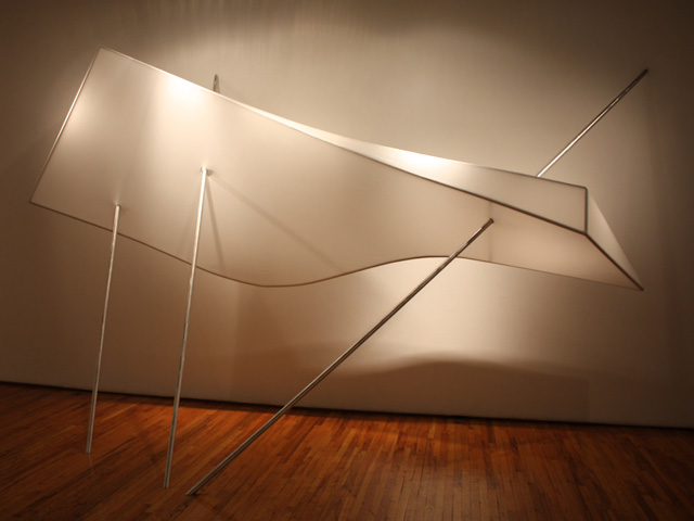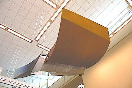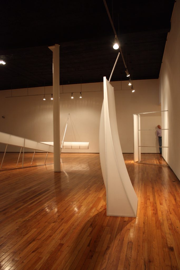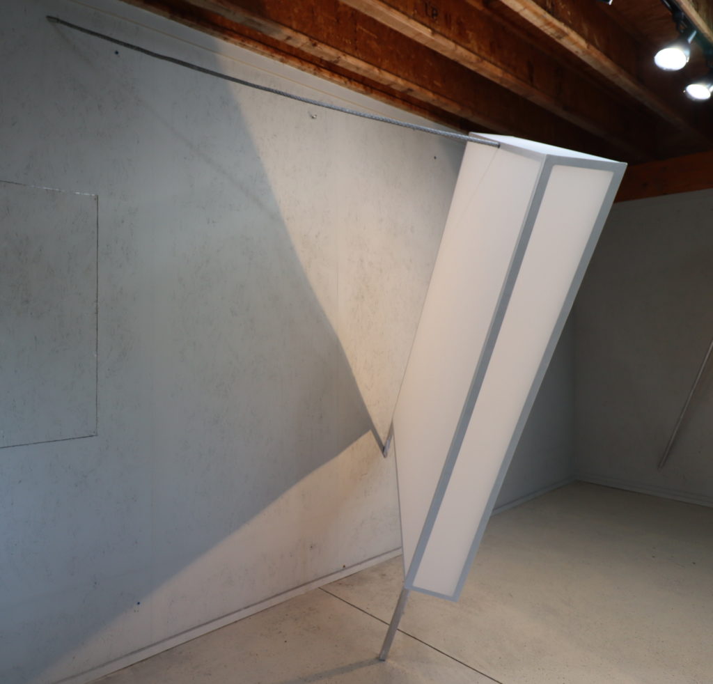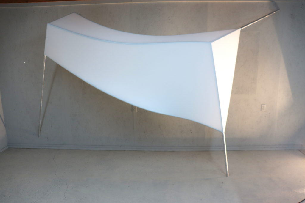 48” at end of cantilever, 14”h boxed structure x 164”w x 26”d